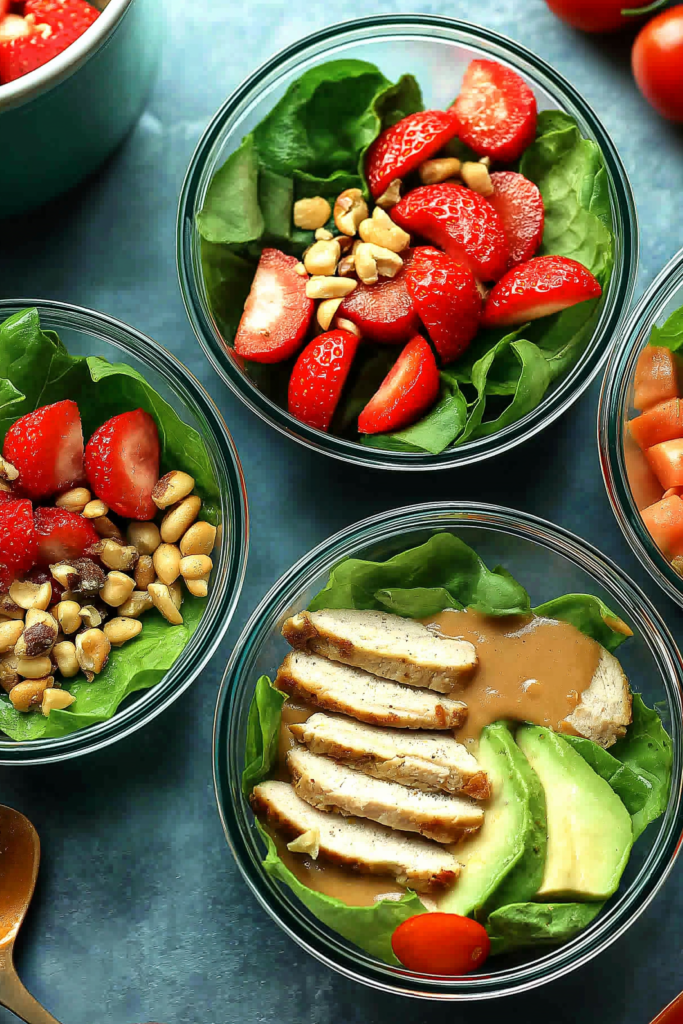 pre-cooked proteins like grilled chicken, tuna, hard-boiled eggs, or chickpeas