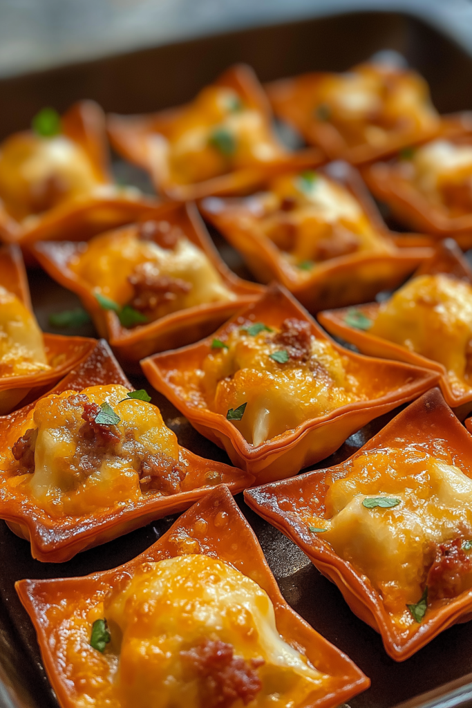 These Baked Sausage and Cheese Mini Wontons are golden, crispy bites of savory perfection! Filled with seasoned sausage, melty cheese, and baked to crispy deliciousness, they make the perfect appetizer, snack, or game-day treat. They’re super easy to assemble and bake—no frying, no fuss, and always a hit!