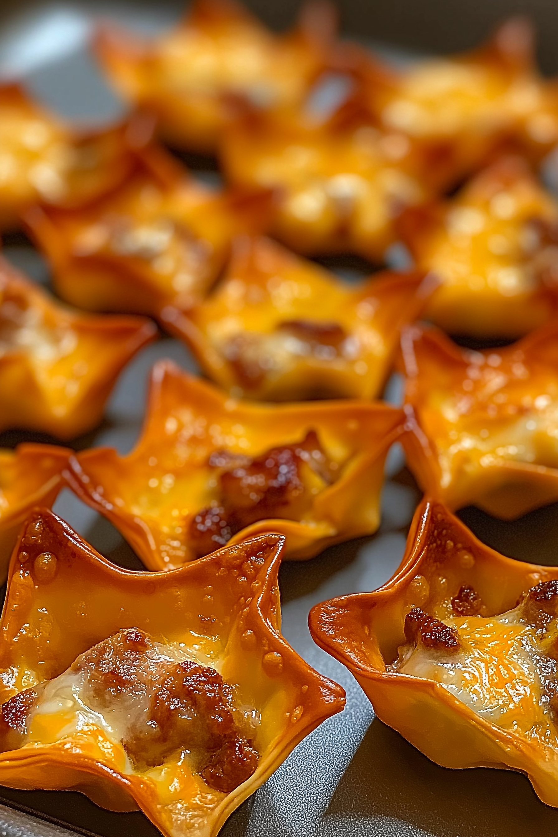These Baked Sausage and Cheese Mini Wontons are golden, crispy bites of savory perfection! Filled with seasoned sausage, melty cheese, and baked to crispy deliciousness, they make the perfect appetizer, snack, or game-day treat. They’re super easy to assemble and bake—no frying, no fuss, and always a hit!