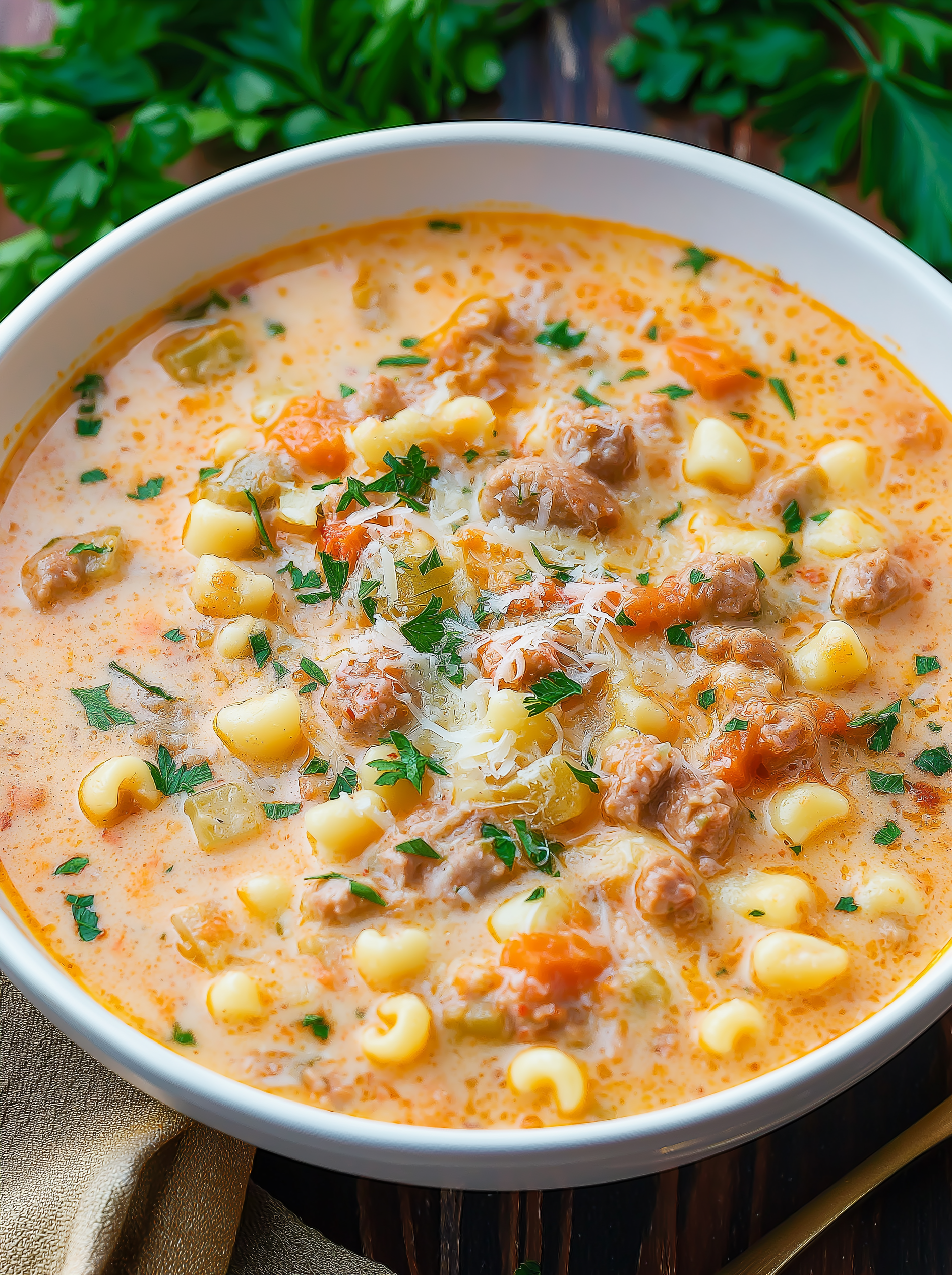 This Creamy Parmesan Italian Sausage Soup is the ultimate bowl of comfort—rich, savory, and loaded with flavor. It features spicy or mild Italian sausage, tender vegetables, and a silky Parmesan cream broth that will have everyone going back for seconds. Perfect for chilly nights, family dinners, or meal prepping for the week, this soup is quick to make and tastes like it simmered all day.