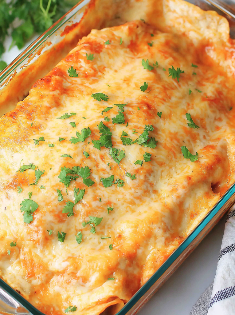 Freezer: Freeze assembled enchiladas (before baking) for up to 2 months. Thaw overnight and bake as directed