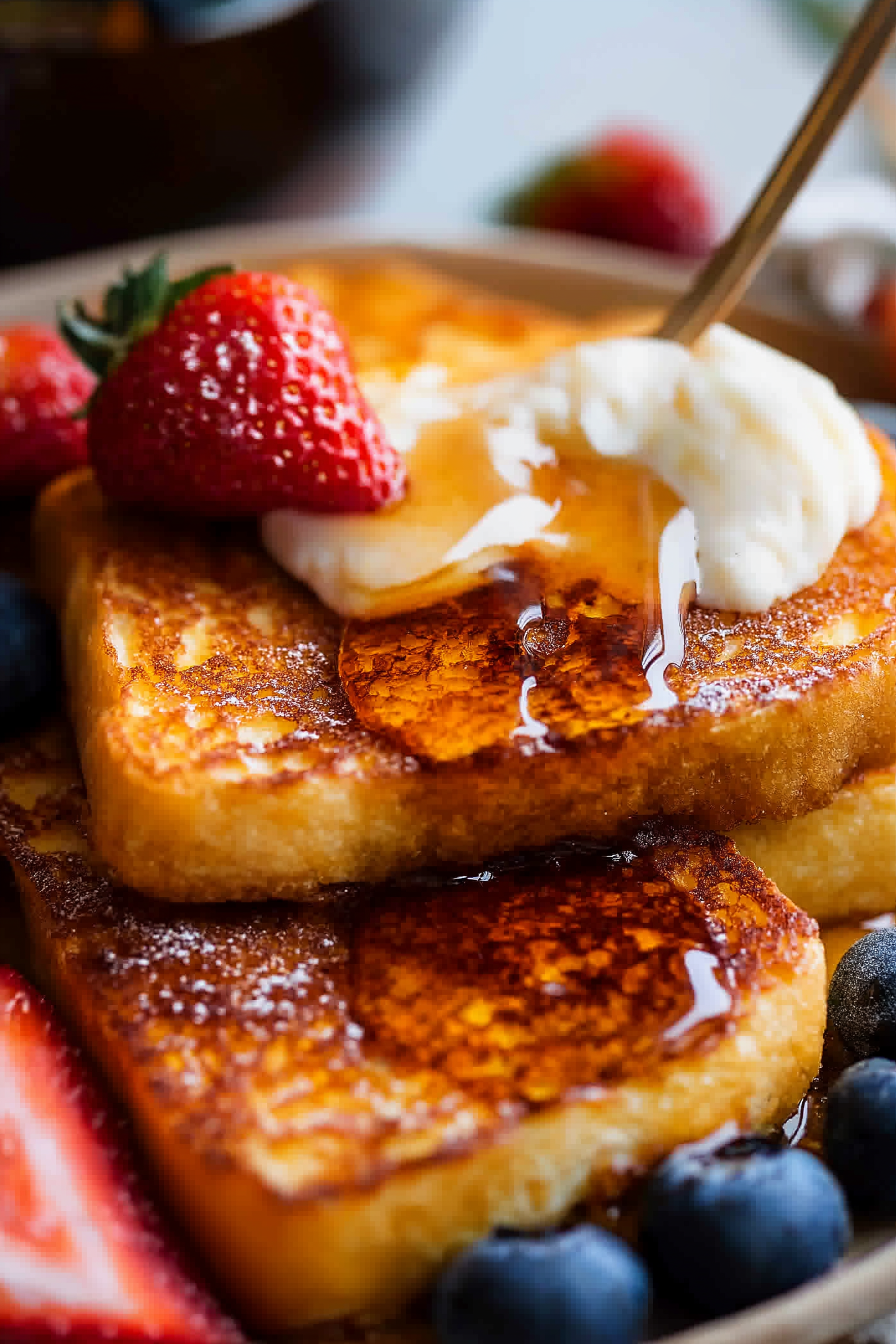 Return the cooked French Toast to the skillet and cook 1–2 minutes per side until caramelized and slightly crisp