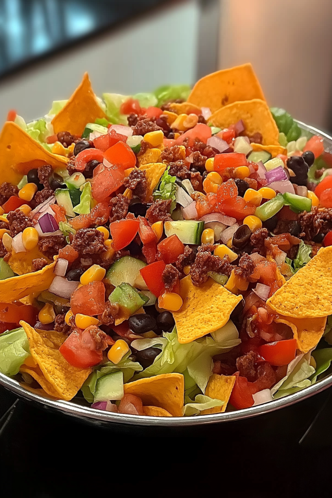 This Easy Doritos Taco Salad is crunchy, cheesy, and bursting with bold flavor—perfect for quick dinners, casual gatherings, or fun family nights.