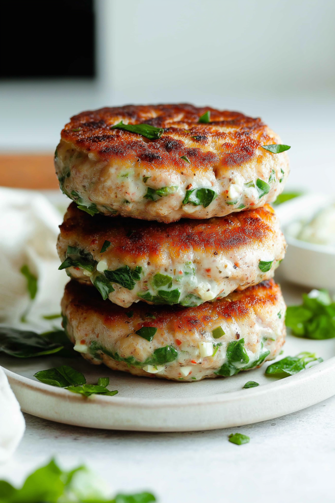 These Healthy Turkey Burgers with Spinach, Feta & Tzatziki are a Mediterranean twist on the classic burger—flavorful, juicy, and packed with nutrients. Lean ground turkey is mixed with fresh spinach and salty feta, then grilled or pan-cooked to perfection. Topped with creamy, tangy tzatziki and your favorite fresh veggies, this burger is light yet super satisfying—perfect for a healthy lunch or dinner.
