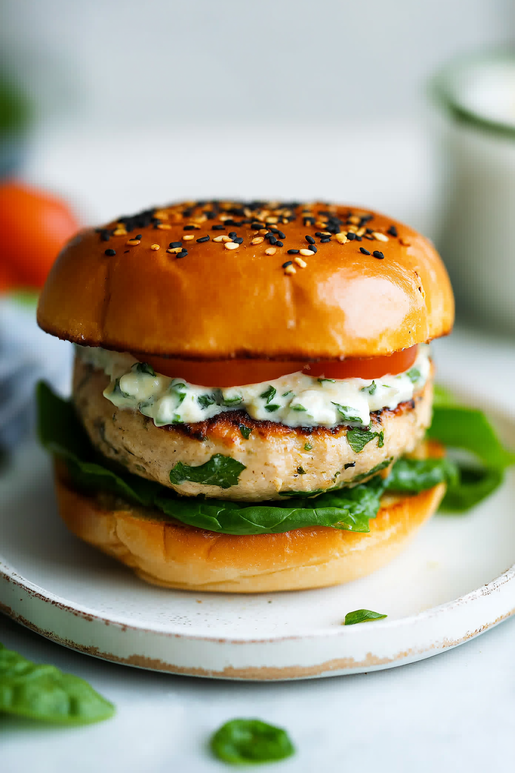 These Healthy Turkey Burgers with Spinach, Feta & Tzatziki are a Mediterranean twist on the classic burger—flavorful, juicy, and packed with nutrients. Lean ground turkey is mixed with fresh spinach and salty feta, then grilled or pan-cooked to perfection. Topped with creamy, tangy tzatziki and your favorite fresh veggies, this burger is light yet super satisfying—perfect for a healthy lunch or dinner.