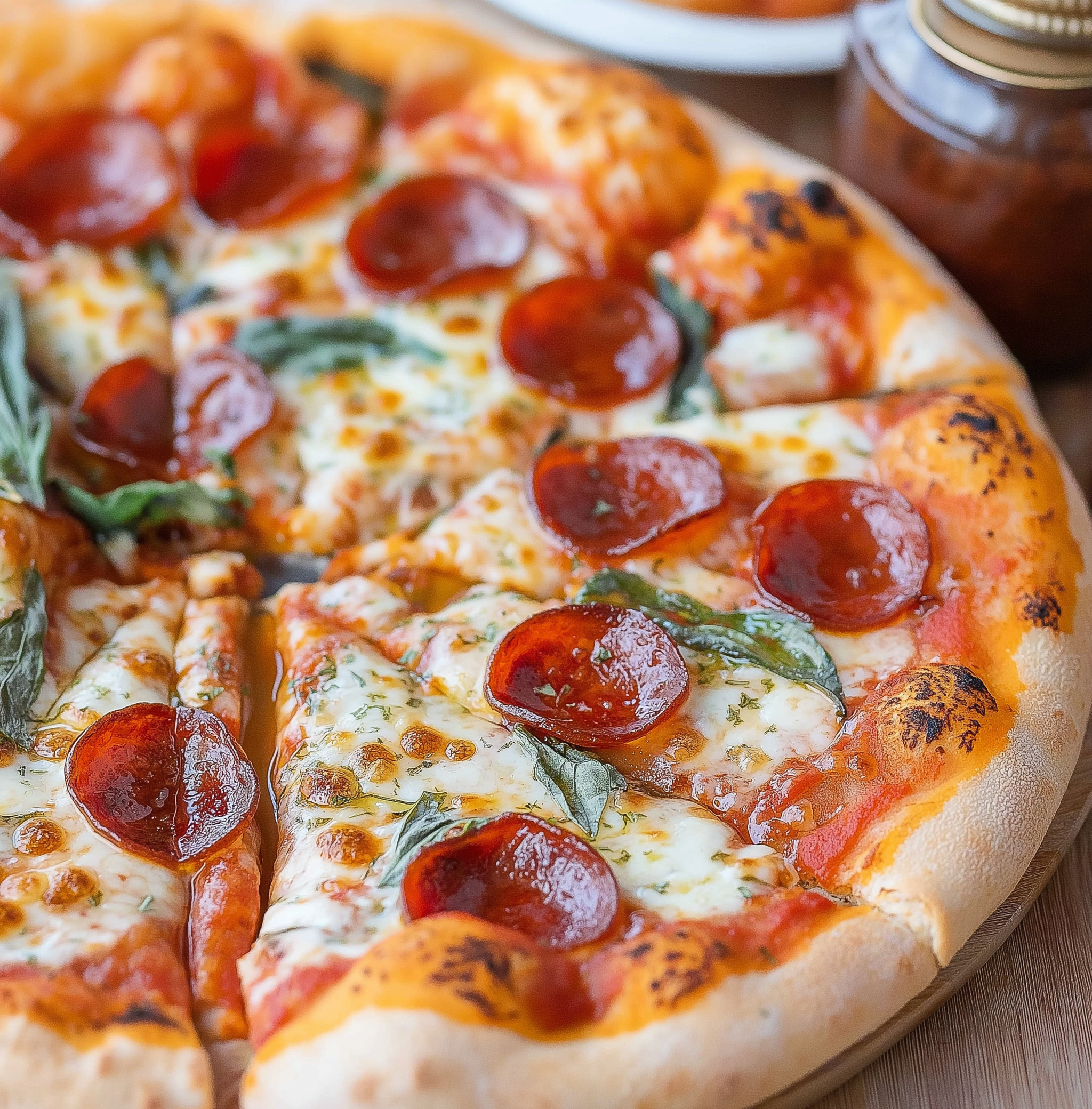 This Hot Honey Pepperoni Ricotta Pizza is the perfect balance of sweet, spicy, creamy, and crispy—all baked into one epic pie. Think crispy crust layered with zesty tomato sauce, gooey mozzarella, spicy pepperoni, dollops of creamy ricotta, and a drizzle of sweet hot honey that ties it all together. It’s bold, indulgent, and guaranteed to level up your pizza night.