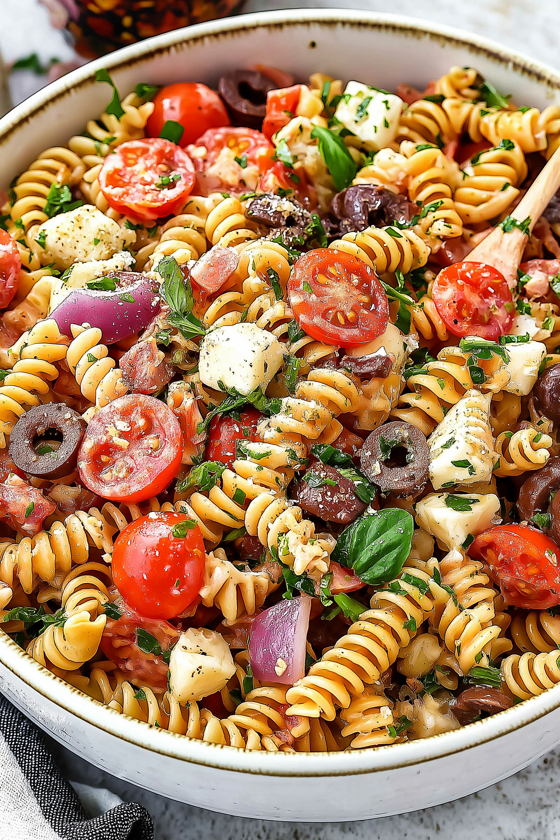This Italian Dressing Pasta Salad is tangy, crunchy, cheesy, and full of fresh flavor—easy to make and perfect for just about any gathering! 🥗🇮🇹
