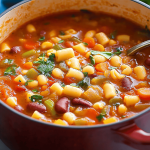 I love minestrone soup, and I know you will too. I love it. I love it. I love it. I love it.flavor. It’s just phenomenal. We’re talking layers upon layers of savory goodness – the sweetness from the carrots and tomatoes, the earthiness from the beans, the subtle bite from the celery and onion, all brought together by a rich vegetable or chicken broth and a hint of herbs. It’s the kind of soup that warms you from your toes up. Then there’s the sheer simplicity of it all. Despite how complex and satisfying it tastes, the actual cooking process is surprisingly straightforward. You chop, you sauté, you simmer – that’s pretty much it! It’s a one-pot wonder, which means less cleanup, and who doesn’t love that? This recipe is also incredibly cost-effective. Most of the ingredients are pantry staples or budget-friendly vegetables that are always readily available. You can feel good about serving something so nourishing and delicious without breaking the bank. And talk about versatility! I’ve already mentioned how adaptable minestrone is, and this recipe is no exception. You can swap out vegetables based on what’s in season or what you have on hand. Add some spinach at the end for extra greens, throw in some leftover cooked chicken, or even a handful of cooked pasta or rice to make it even more substantial. It’s perfect for those chilly evenings when you need something comforting, but it’s also fantastic for lunch the next day (it’s even better as leftovers, trust me!). It’s the kind of dish that makes you feel like a kitchen magician, creating something so delicious and wholesome with relatively little fuss. It’s the opposite of those fussy, complicated recipes that leave you stressed; this one just feels good to make and even better to eat.