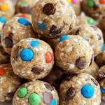 Oh, you guys, I am SO excited to share this recipe with you today! It feels like I’m finally letting you in on a little secret that has been a total game-changer in my kitchen. You know those moments when you’re hit with a serious craving for something sweet, maybe a little bit of that cookie magic, but the thought of preheating the oven, measuring out flour, and dealing with all the baking cleanup just feels… like too much? Yeah, I’ve been there a million times. That’s exactly when I reach for these Monster Cookie Energy Balls. They’re like a tiny, perfect bite of everything you love about a classic monster cookie – chewy oats, melty chocolate chips, the satisfying crunch of peanut butter – all rolled up into these perfectly portable little powerhouses. Seriously, they disappear faster than you can say “snack time!” They’re my answer to those late-night sweet tooth urges or when I need a quick, energizing boost without diving into a whole bag of chips. Think of them as the “no-bake” cousin to my famous no-bake chocolate oatmeal cookies, but with a fun, colorful twist.