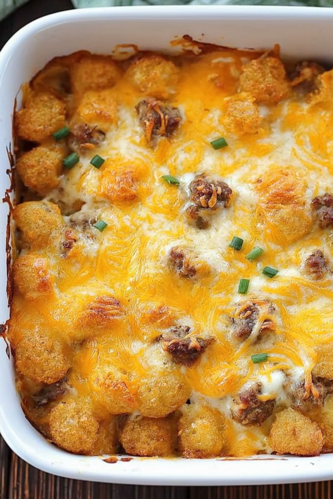 This Tater Tot Sausage Breakfast Casserole is the ultimate make-ahead morning meal—crispy tater tots, savory sausage, fluffy eggs, and gooey cheese baked together into one delicious dish. It’s perfect for weekend brunch, holidays, or feeding a crowd with minimal effort. Just layer, bake, and enjoy a comforting, satisfying breakfast that hits all the right notes.